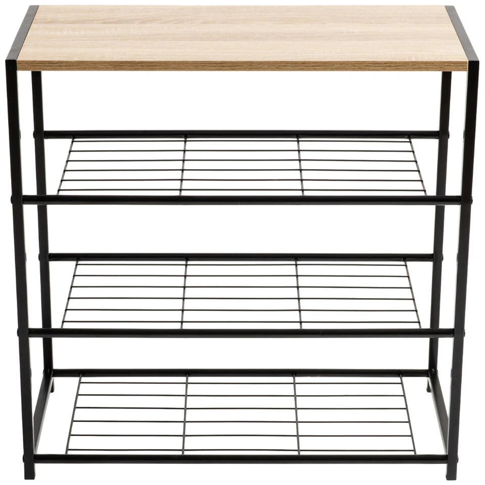Dit schoenenrek met houten plank zal altijd van pas komen. De mooie bleke afwerking van de plank zal u zeker weten te bekoren. Bovendien kan u tot wel 9 paar schoenen op de 3 metalen rasters kwijt.