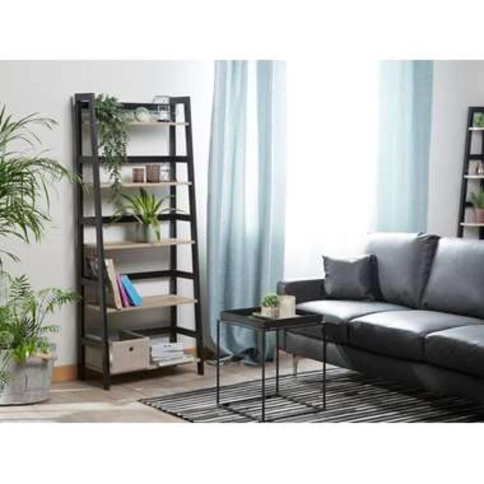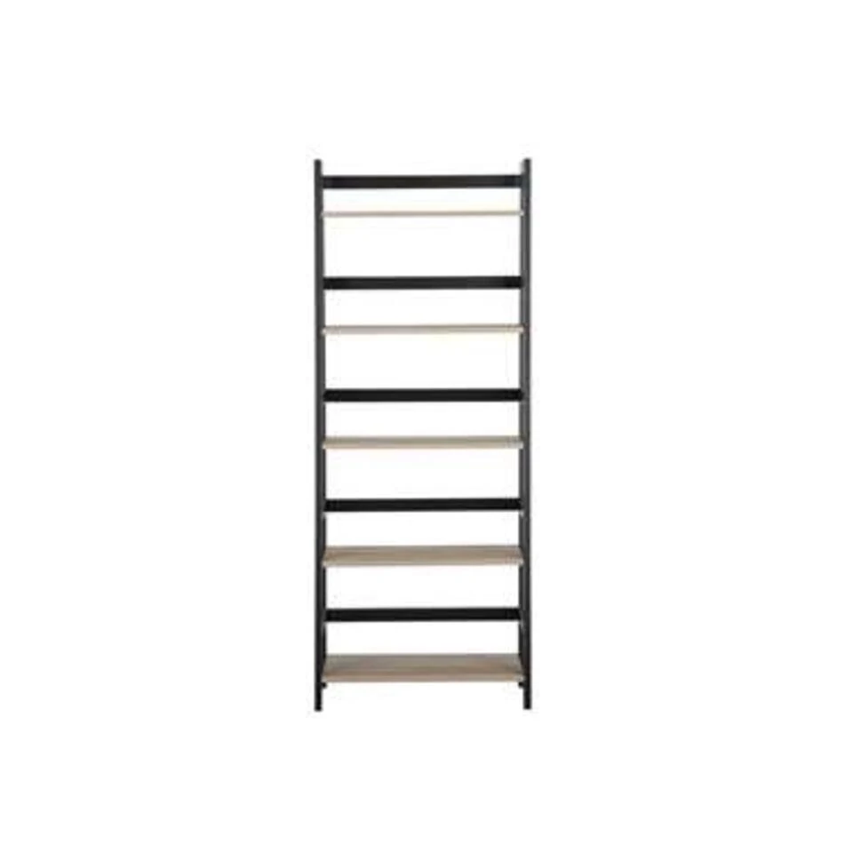 Boekenkast in industriële look. Of het nu in de woonkamer of in de slaapkamer is – deze trendy boekenkast biedt voldoende ruimte voor boeken, decoraties, kaarsen en zet allerlei andere objecten weer op de kaart. Het schuine metalen frame in zwart heeft vijf ruime planken in een lichte houtlook en straalt een decoratieve sfeer met industriële charme uit.