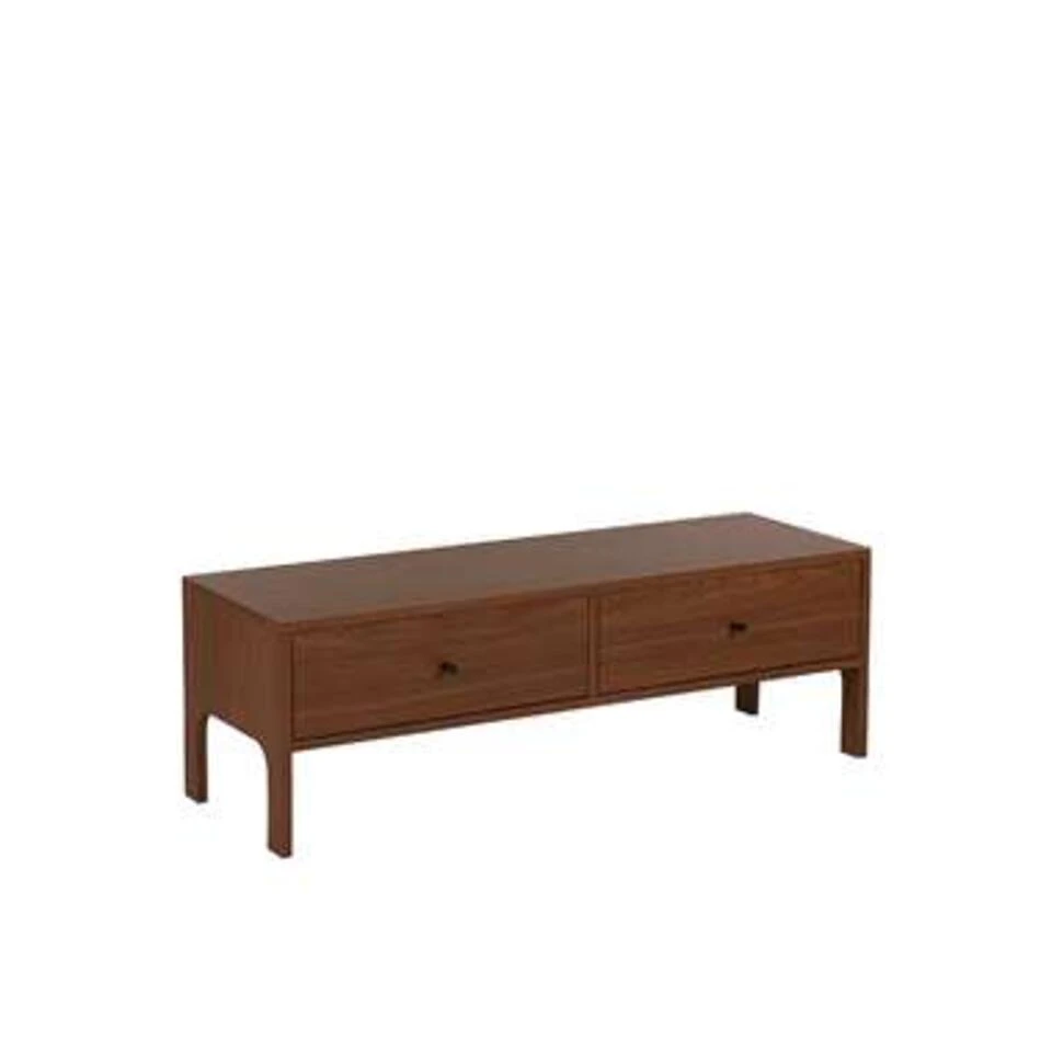 TV-meubel met twee laden. Dit TV-meubel is een blikvanger in jouw woonkamer! De tijdloze vorm en kleur combineren perfect met elke elegante inrichtingsstijl. Dankzij de twee ruime laden biedt het meubel veel opbergruimte. Dit lowboard combineert elegantie met functionaliteit!
