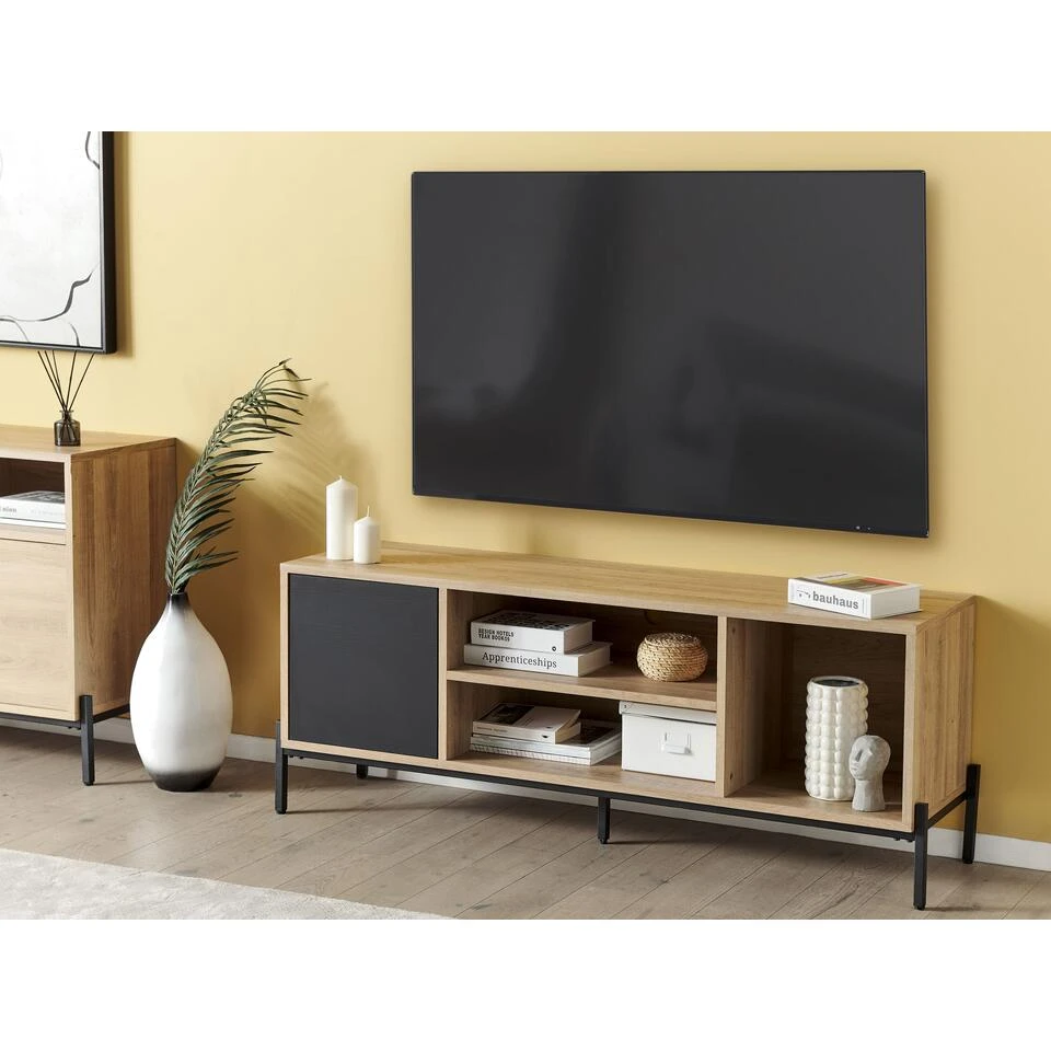 Lage tv kast. Geef je woonkamer een upgrade met dit Tv-meubel, dat past bij allerlei moderne interieurs. Het stuk heeft slanke metalen poten en een warme houten afwerking met een solide grijs front. De kast heeft een slim ontwerp met een deur en drie open planken voor voldoende opbergruimte voor al je accessoires. Daarnaast heeft het stuk een gat voor kabels in de achterzijde waardoor je geen rommel met media-apparatuur zal ervaren.