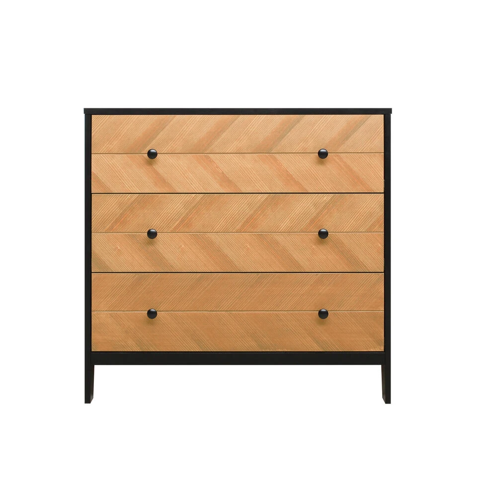 Deze stijlvolle commode Job van Bopita is uitgevoerd in een stoere combinatie van mat zwart en gefineerd hout. De laden zijn voorzien van een visgraatmotief en hebben een ronde, zwarte knoppen als handgrepen. Aangezien het een natuurproduct betreft kan de houtstructuur per meubel van de serie Job verschillen. Het hout van deze ladenkast is afkomstig uit Europese bossen. De gebruikte lakken zijn op waterbasis wat veilig is voor kinderen en milieuvriendelijk. De drie ruime lades zijn voorzien van een softclose mechanisme, waardoor de lades zachtjes sluiten. Op deze commode is de barrier Bo te plaatsen. Een barrier, ook wel bladvergroter genoemd, zorgt ervoor dat jouw baby recht voor je ligt, wat het verschonen eenvoudiger maakt. Combineer deze commode eveneens met het wandrek Job. Deze plaats je boven de commode, waardoor je verschillende verschoonartikelen eenvoudig bij de hand hebt. Barrier en wandrek zijn niet inbegrepen.