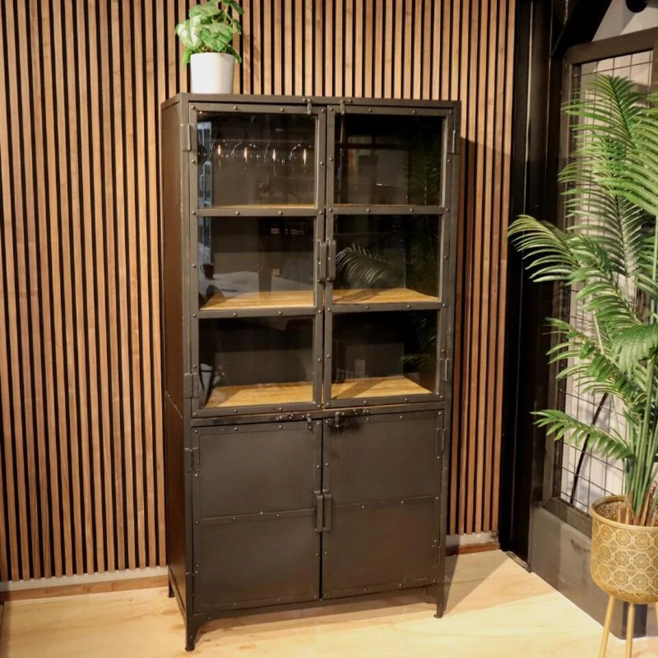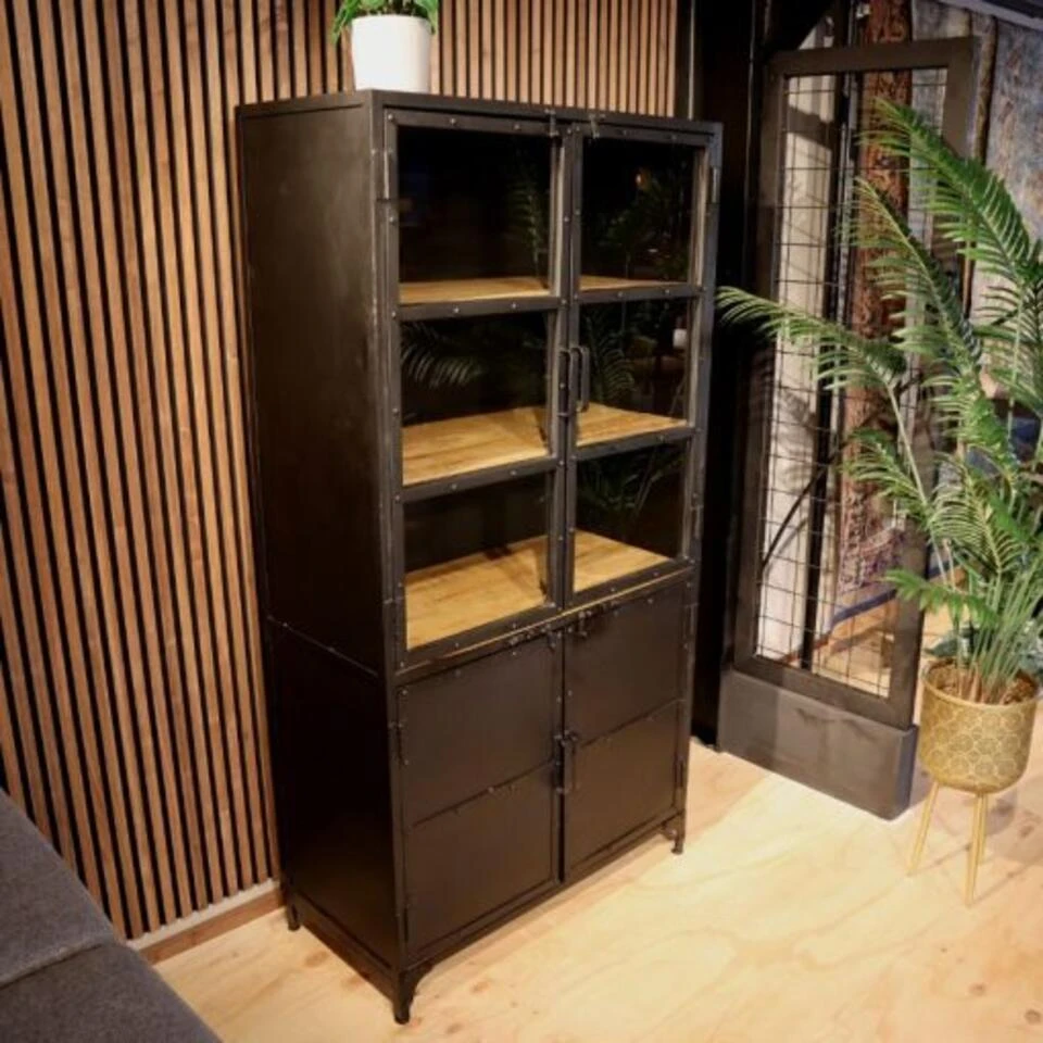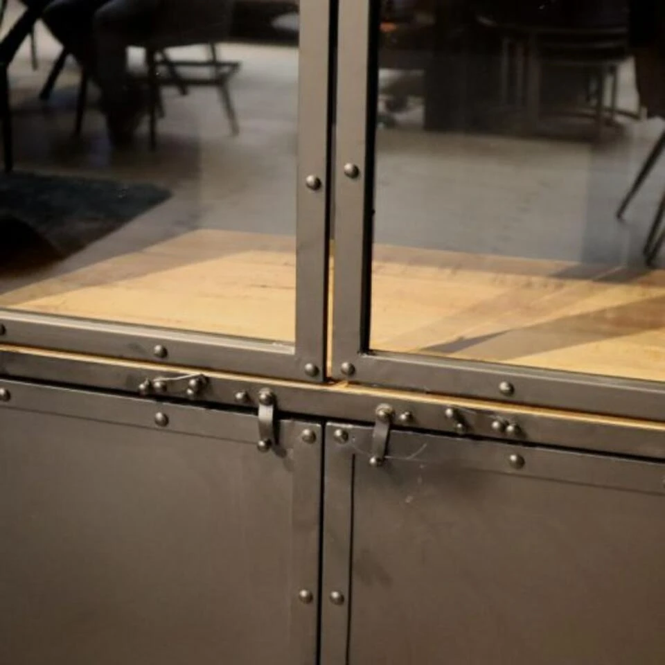 De kasten worden met de handgemaakt en gemonteerd geleverd (geen bouwpakket). Elke kast is uniek en doordat de kast met de hand is gemaakt is het niet allemaal even egaal afgewerkt. Er kunnen om wat voorbeelden te noemen wat krassen/ oneffenheden aanwezig zijn. Dit is de industriële stijl en wordt niet gezien als schade. De deuren kun je sluiten aan de hand van slotjes welke zowel aan de bovenzijde als aan de onderzijde zitten. De kast beschikt over magneten, maar omdat deze niet altijd goed werken, zijn de slotjes ter ondersteuning bevestigd om de deuren geheel te kunnen sluiten.