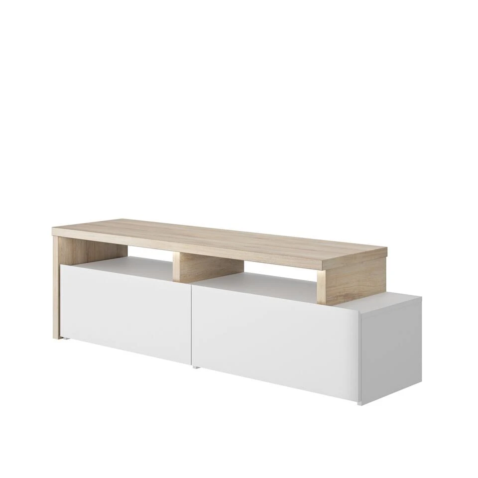 De beweegbare eiken kleurige bovenkant van 35 mm dikte is een echte troef voor dit TV-meubel. Het is gemaakt van licht Kronberg eikenhout, wat zorgt voor een natuurlijke en warme uitstraling. De TV-meubel MIKE is een kwaliteitsproduct, ontworpen om lang mee te gaan. Het is gemakkelijk te monteren en te gebruiken en past perfect in uw interieur. Bestel het nu en geniet van het elegante ontwerp en de praktische functionaliteit!