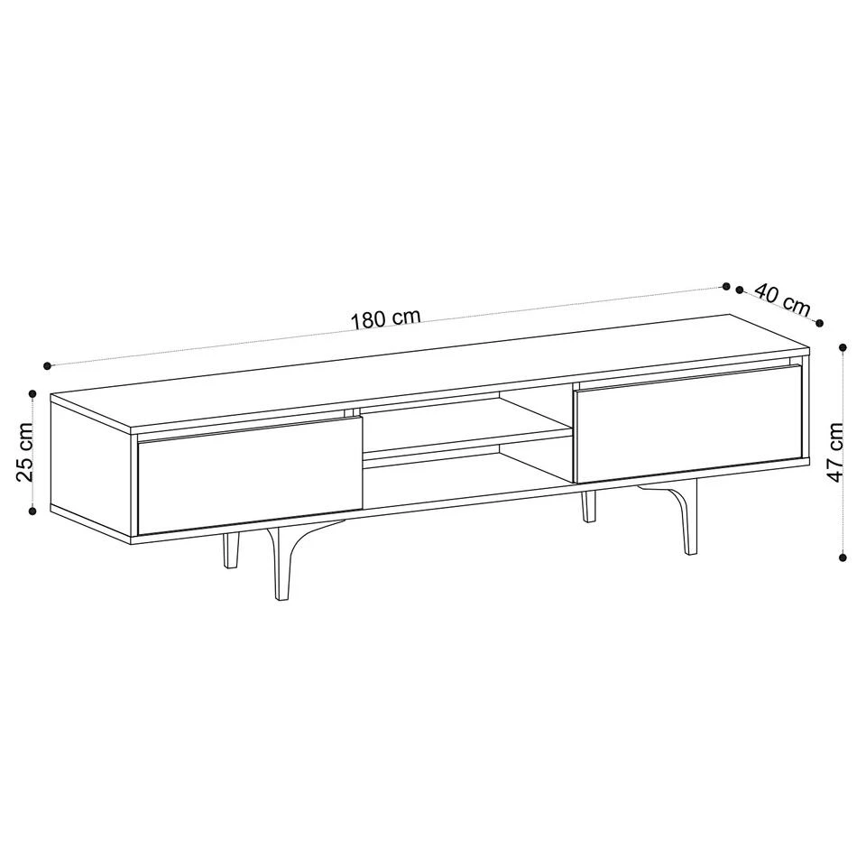Ben je op zoek naar een TV-meubel dat functionaliteit en stijl combineert? Kijk dan niet verder dan onze collectie tv-meubels! Of je nu je woonkamer opnieuw inricht of een nieuw huis inricht, onze TV-standaard biedt een modern ontwerp dat elke woonruimte zal verfraaien.Een van de opvallende kenmerken van onze TV-standaard is de constructie. Gemaakt van gemelamineerd spaanplaat, is dit meubel niet alleen duurzaam maar ook bestand tegen krassen en vlekken. Met een breedte van 150 cm, een hoogte van 47 cm en een diepte van 40 cm biedt ons tv-meubel voldoende ruimte om niet alleen je tv maar ook alle decoratieve voorwerpen die je wilt tentoonstellen op te bergen. Of het nu gaat om familiefoto’s, potplanten of verzamelobjecten, onze TV-standaard heeft genoeg ruimte om je persoonlijke stijl te laten zien.De TV-standaard is uitgerust met kunststof poten met een hoogte van 22 cm. Deze poten zorgen niet alleen voor stabiliteit, maar voegen ook een vleugje moderniteit toe aan het algehele ontwerp. De eiken kleur van het meubel past bij verschillende interieurstijlen en voegt warmte en verfijning toe aan je woonkamer.Naast het veelzijdige ontwerp biedt ons tv-meubel ook praktisch nut. Hij is voorzien van talloze planken zodat je je media-apparatuur zoals dvd-spelers, spelconsoles en kabeldozen gemakkelijk kunt organiseren en opbergen. Zeg maar dag tegen verwarde snoeren en rommelige opstellingen, want onze tv-standaard biedt een rommelvrije oplossing.Als je je tv-standaard liever stevig aan de muur bevestigd hebt, is ons meubel eenvoudig te installeren. Deze functie voegt niet alleen een extra laag stabiliteit toe, maar helpt ook het vloeroppervlak te maximaliseren, waardoor je woonkamer ruimer en georganiseerder lijkt.Verfraai je woonkamer met onze TV-standaard die stijl, duurzaamheid en functionaliteit combineert. Met zijn moderne ontwerp, melamine gecoate spaanplaat constructie, veel opbergruimte en mogelijkheid tot muurbevestiging is onze TV-standaard de ideale keuze voor elk huis. Bestel hem vandaag nog en verander je woonkamer in een stijlvolle en georganiseerde ruimte.