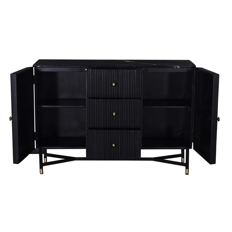 Giga Meubel Dressoir Zwart Met Marmer – Japandi Style – 120x38x85cm