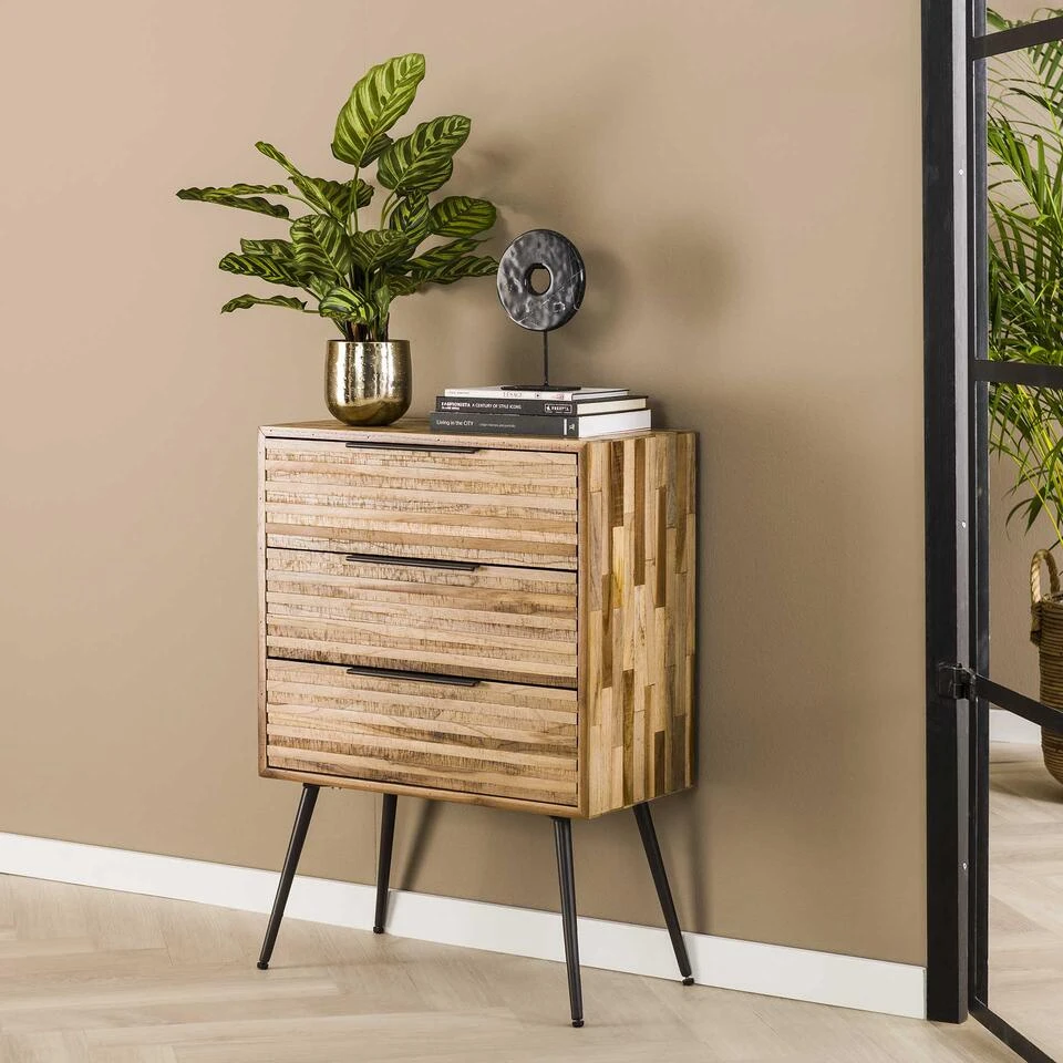 Giga Meubel Ladekast Teakhout – 3 Lades – 30x60x80cm – Naturel