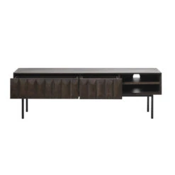 De Lazio tv-tafel is een heel mooie tv-tafel en volledig uniek met zijn ongelooflijk mooie en zeer speciale patroonfront dat een mooi contrast zal creëren in het lichte Scandinavische huis. De tv-tafel is gemaakt van espressobruin gelakt hout met ladefronten van massief eikenhout en slanke zwart geverfde metalen poten. De tv-tafel is praktisch ingericht met twee goede lades en een open ruimte met ruimte voor kabelverlenging. Tv -meubel Lazio Espresso – Giga Living. Is dit het artikel voor jou? Bestel Tv -meubel Lazio Espresso – Giga Living dan nu direct!