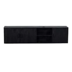 Dit zwevend tv-meubel is gemaakt van mangohout in combinatie met ijzer en is in het zwart afgewerkt. Dit tv-meubel geeft de mogelijkheid om al je apparatuur in de kast te bewaren en netjes weg te werken. Met zijn stoere uiterlijk past hij binnen een industrieel interieur. Is dit het tv-meubel dat je zoekt? Bestel hem dan direct online op en profiteer van onze gratis verzending bij een besteding boven de 100,-.