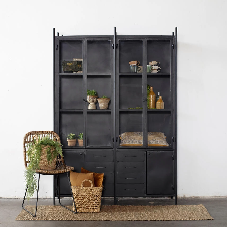 De serie Fik behoort tot een van onze favorieten. Deze vitrinekast is 4 deurs en heeft 8 lades, daardoor biedt Fik jou genoeg ruimte om spullen op te bergen die je liever niet in het zicht hebt. Naast de praktische functie heeft de vitrinekast de mogelijkheid om jouw favoriete accessoires extra te benadrukken door de glazen deuren. Zo komen jouw mooiste items nog beter tot hun recht.