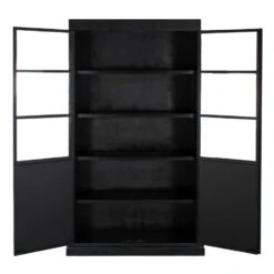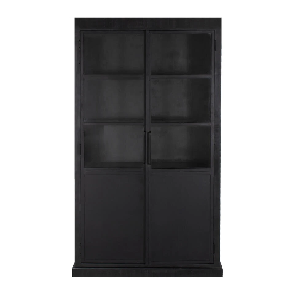 Giga Meubel Vitrinekast Zwart – Mangohout & IJzer – 2-Deurs