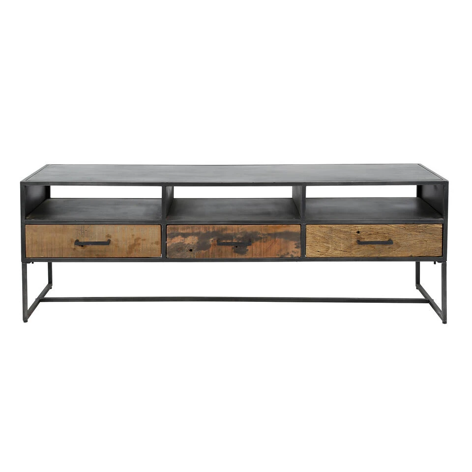 Het frame van het industriële TV-meubel is gemaakt van metaal met een gun metal finish. Dit draagt ook bij aan de vintage stijl. De handvaten van de lades zijn ook gemaakt van metaal en dragen bij aan de industriële stijl. ​​​ Materiaal frame
