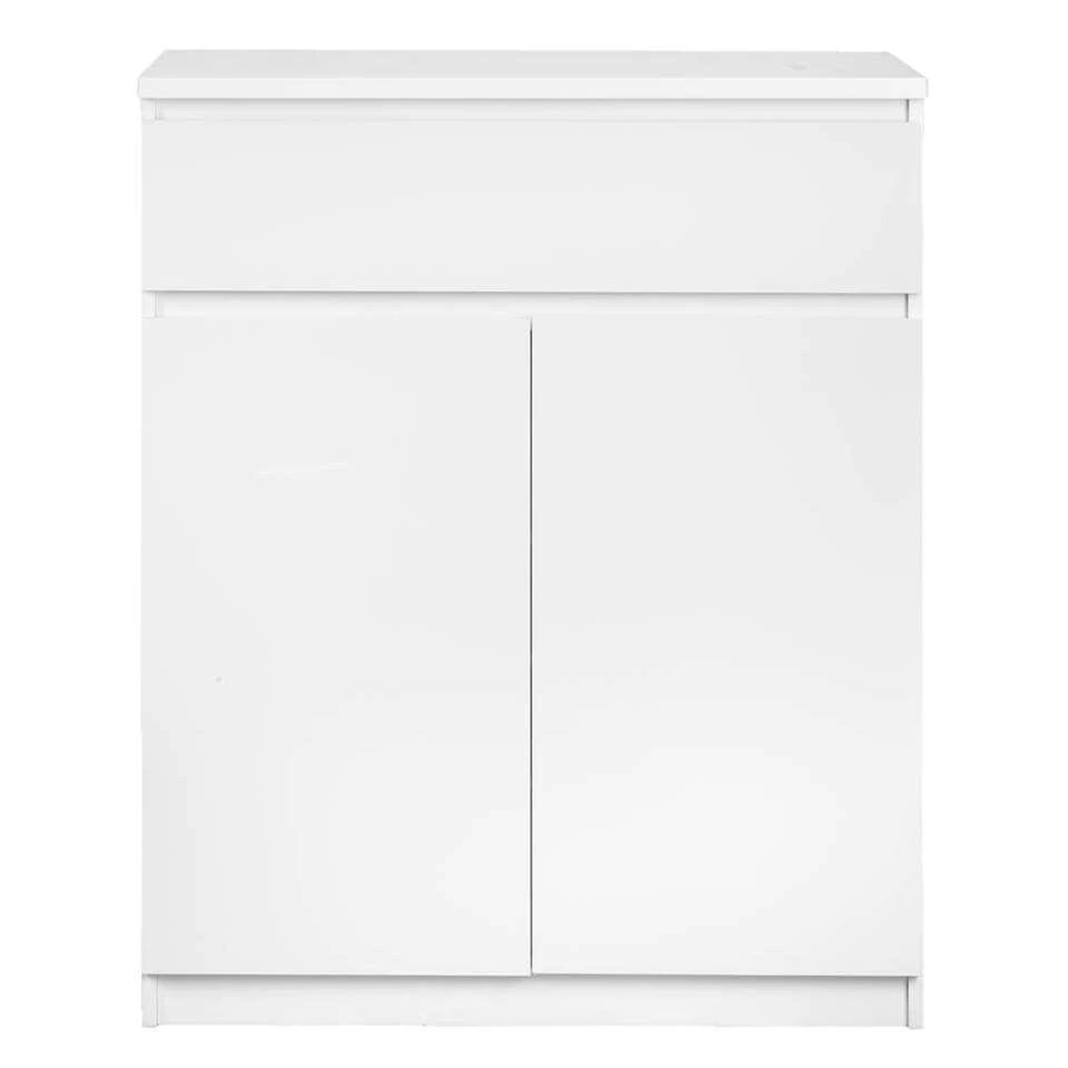 KastĀ Naia is een moderne kast in hoogglans wit met een greeploze afwerking. Het design van dit kastjeĀ bevat strakke vormen en rechte lijnen. Dit meubelstuk is gemaaktĀ van spaanplaat. Totale afmeting (hxbxd) van deze kast is 100x80x40 cm.