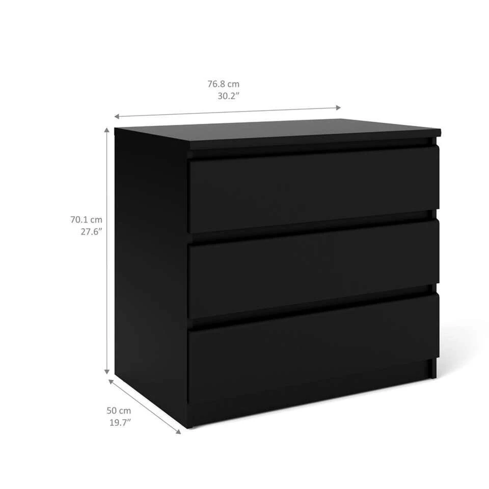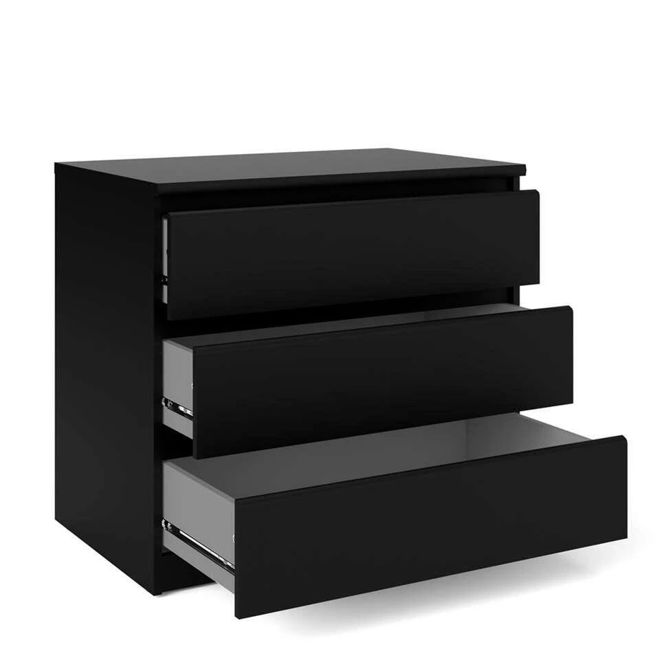 Ladekast Naia – 3 Lades – Mat Zwart – 70,1×76,8×50 Cm