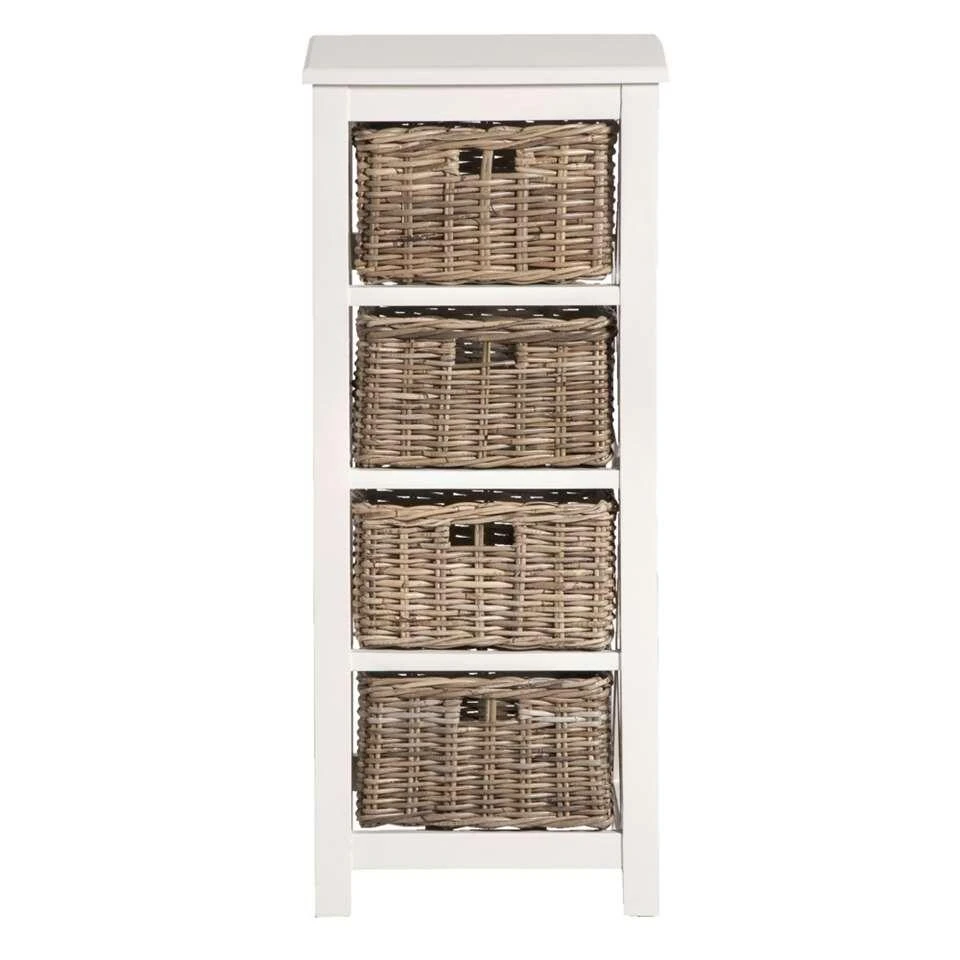 Kast Valerie 4 oogt klassiek, maar heeft een eigentijdse uitstraling door de off-white kleur in combinatie met het natuurlijke materiaal rotan. De witte kast is voorzien van vier rotan manden. Afmeting (hxbxd): 93x39x33 cm.