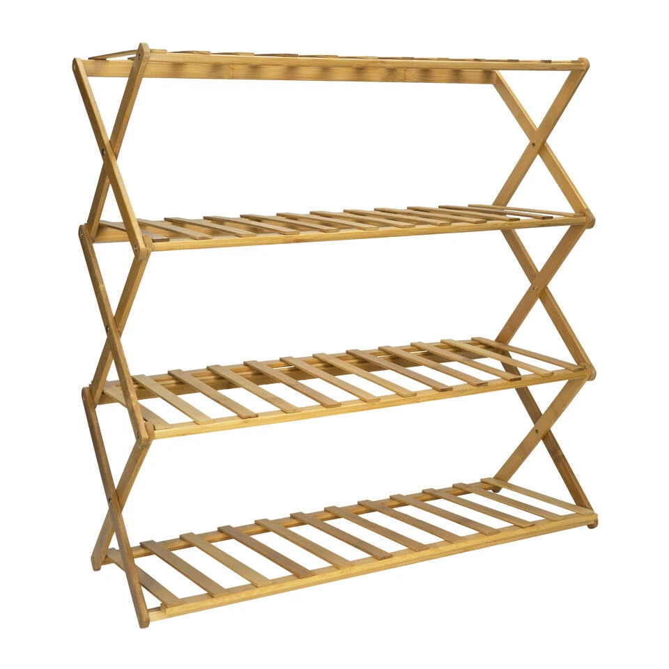 In dit schoenenrek 4-laags heb je voldoende ruimte voor al je schoenen en die van je medebewoners. De schoenenbank is gemaakt van bamboe, waardoor het rek een natuurlijke uitstraling heeft. Je vouwt het rek eenvoudig in en uit, wat het erg gebruiksvriendelijk maakt. Dit schoenenrek 4-laags staat mooi in landelijke en Scandinavische interieurs.