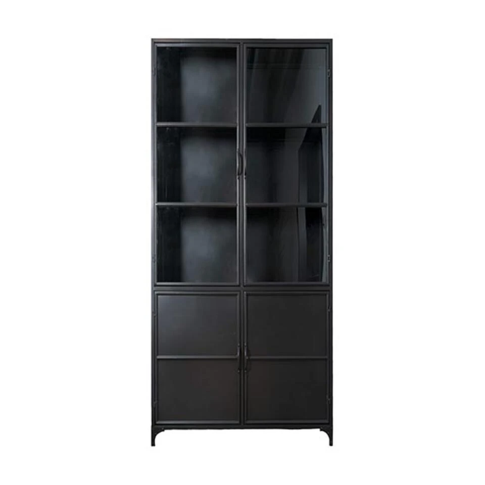De 80cm brede vitrinekast Romy is een stoere zwart metalen kast met glazen deuren. Dankzij de ruwe afwerking van het metaal komt het stoere industriële karakter sterk naar voren. Plaats je mooiste accessoires en services achter deze glazen deuren. Geschikt voor verschillende interieur stijlen. Ook verkrijgbaar in 120cm breedte. Lees verder voor meer informatie.