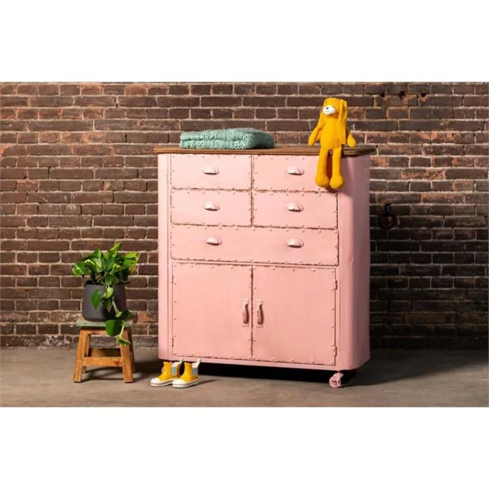 Ontdek de kracht van roze in de New Industrial Vintage stijl. Bestel vandaag nog dit stoere en edgy kastje en voeg een uniek element toe aan je interieur. Durf anders te zijn en omarm de schoonheid van roze in een nieuw perspectief.