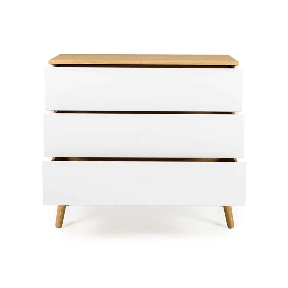 Tenzo ladekast Dot 3 lades is wit met eiken en heeft een afmeting van 79x90x43 cm. Deze ladekast wordt gekenmerkt door een Scandinavisch design. De kast heeft 3 ruime lades voor het opbergen van allerlei losse spullen. Bovenop is voldoende ruimte voor leuke accessoires zoals foto’s, waxinelichthouders, kandelaars en decoratieve vaasjes.