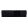 Universele tv-kast, ideaal voor de woonkamer of jeugdkamer. De kast is universeel – hij kan aan de muur worden gehangen of staan (hij heeft plinten die optioneel kunnen worden gemonteerd). De kast is gemaakt in een moderne stijl. Hij heeft één open plank (plaatsen voor settopboxen of consoles) en drie afsluitbare vakken (twee open aan de zijkanten en één aan de onderkant)