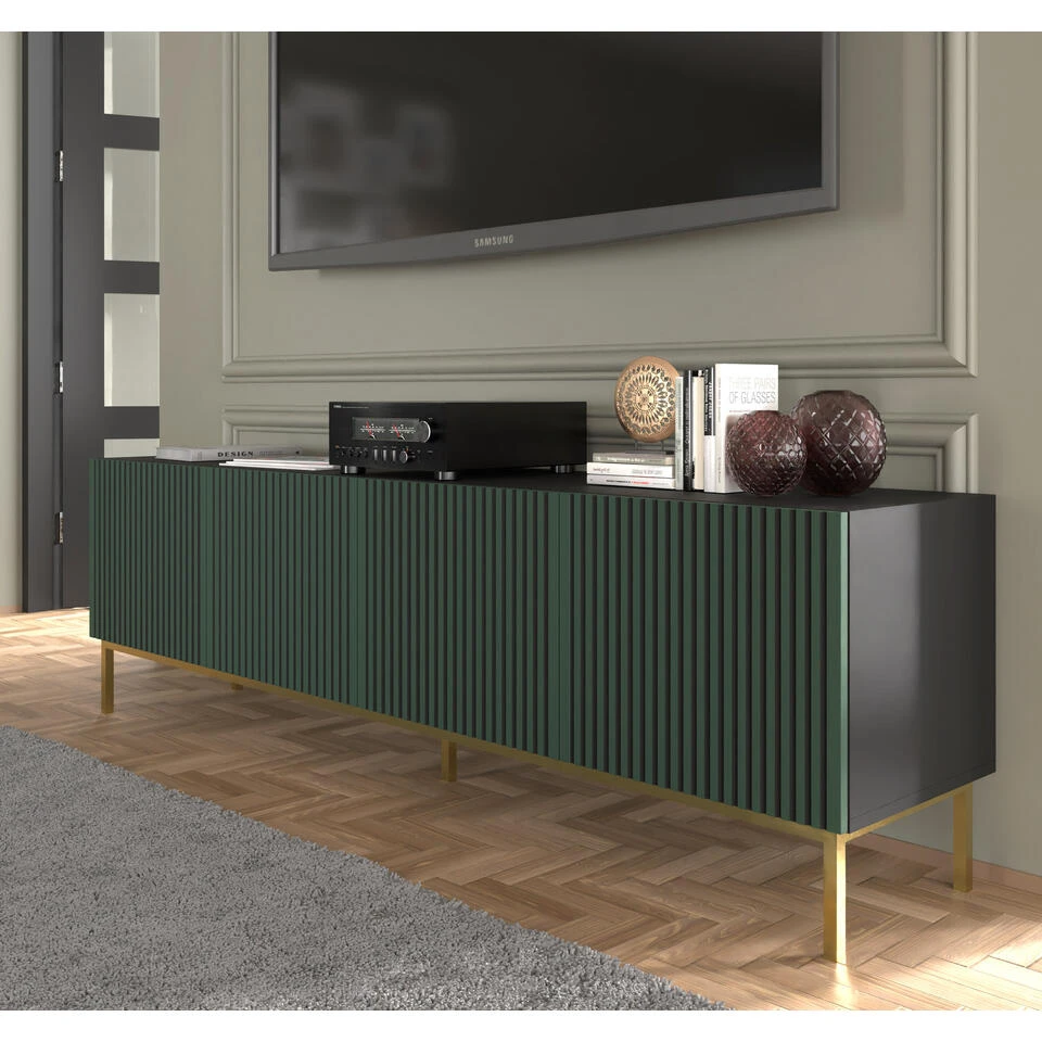 De tv-kast past perfect in de inrichting van de woonkamer en maakt functionele opslag mogelijk. Hij is voorzien van vier ruime vakken.