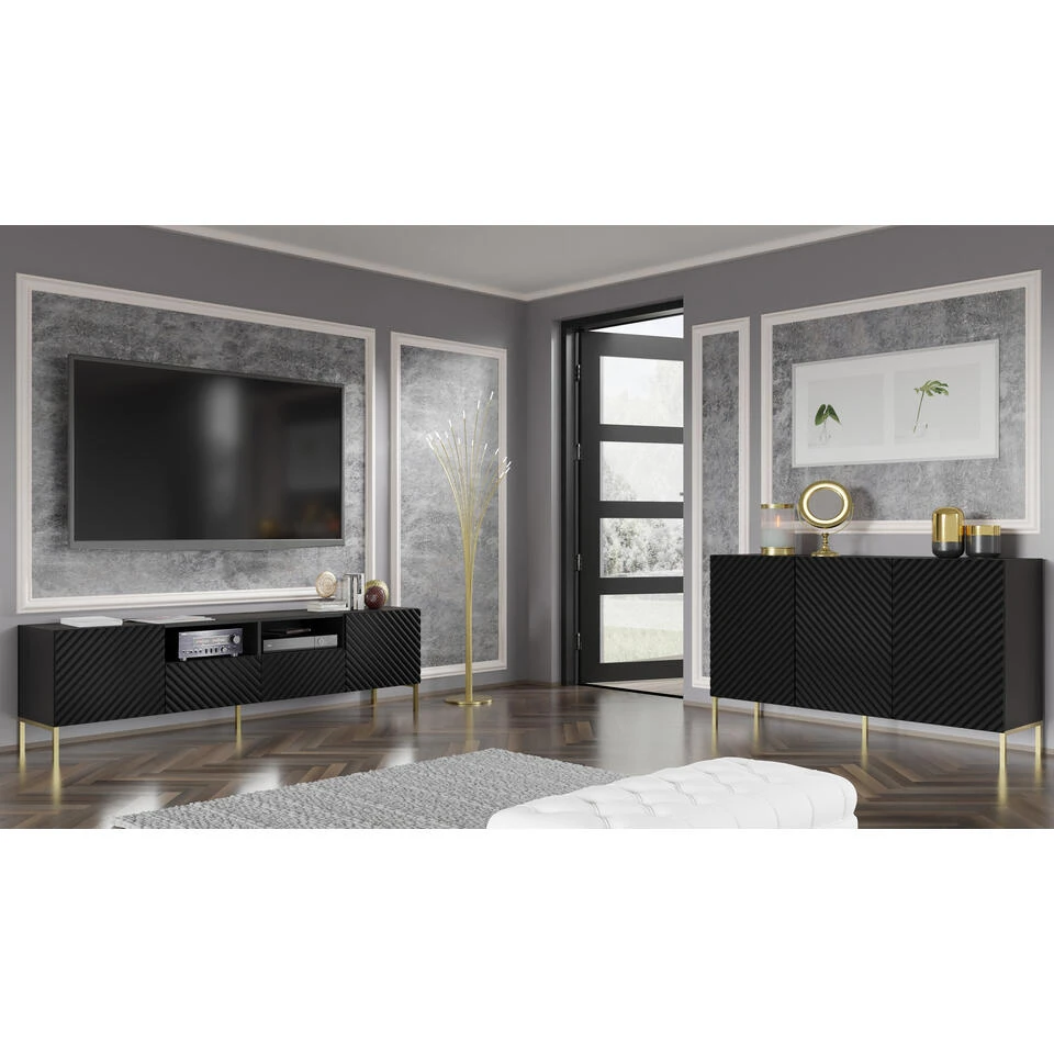 TV meubel SURF 56x200x42 Zwart / Kleur: Zwart / Productmaat: 56x200x42 / Materiaal: MDF