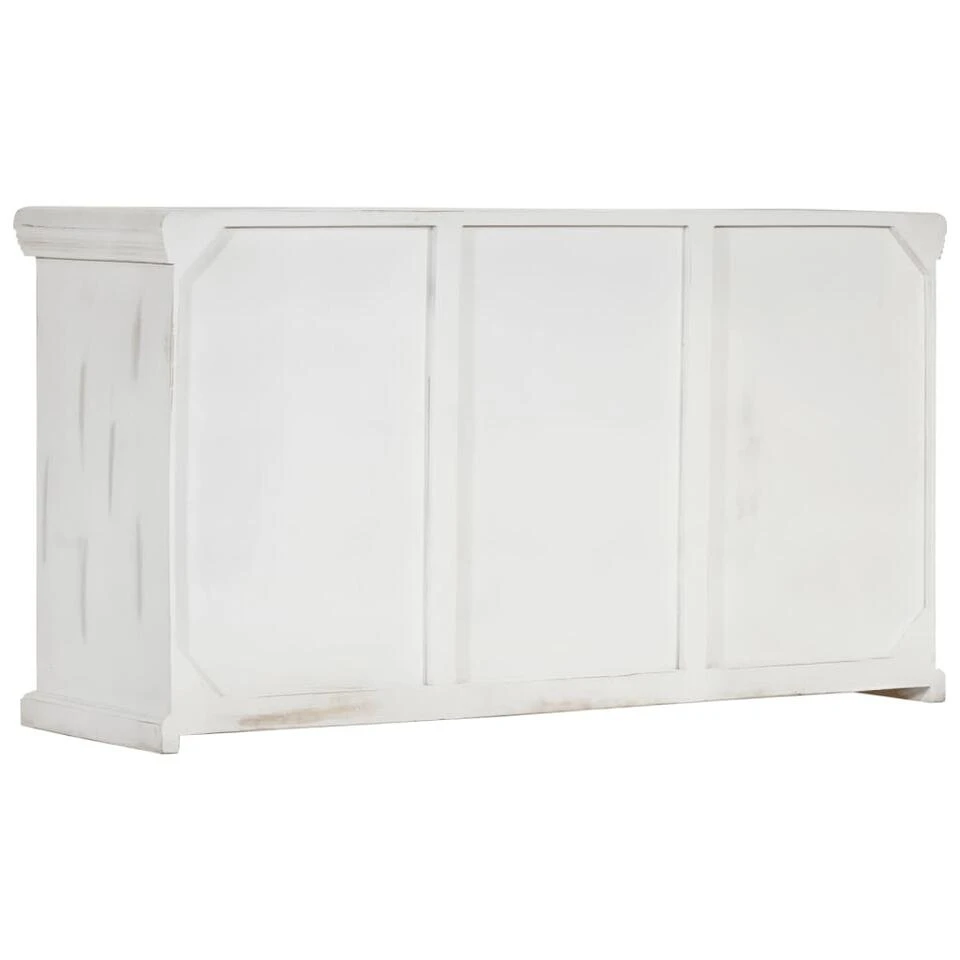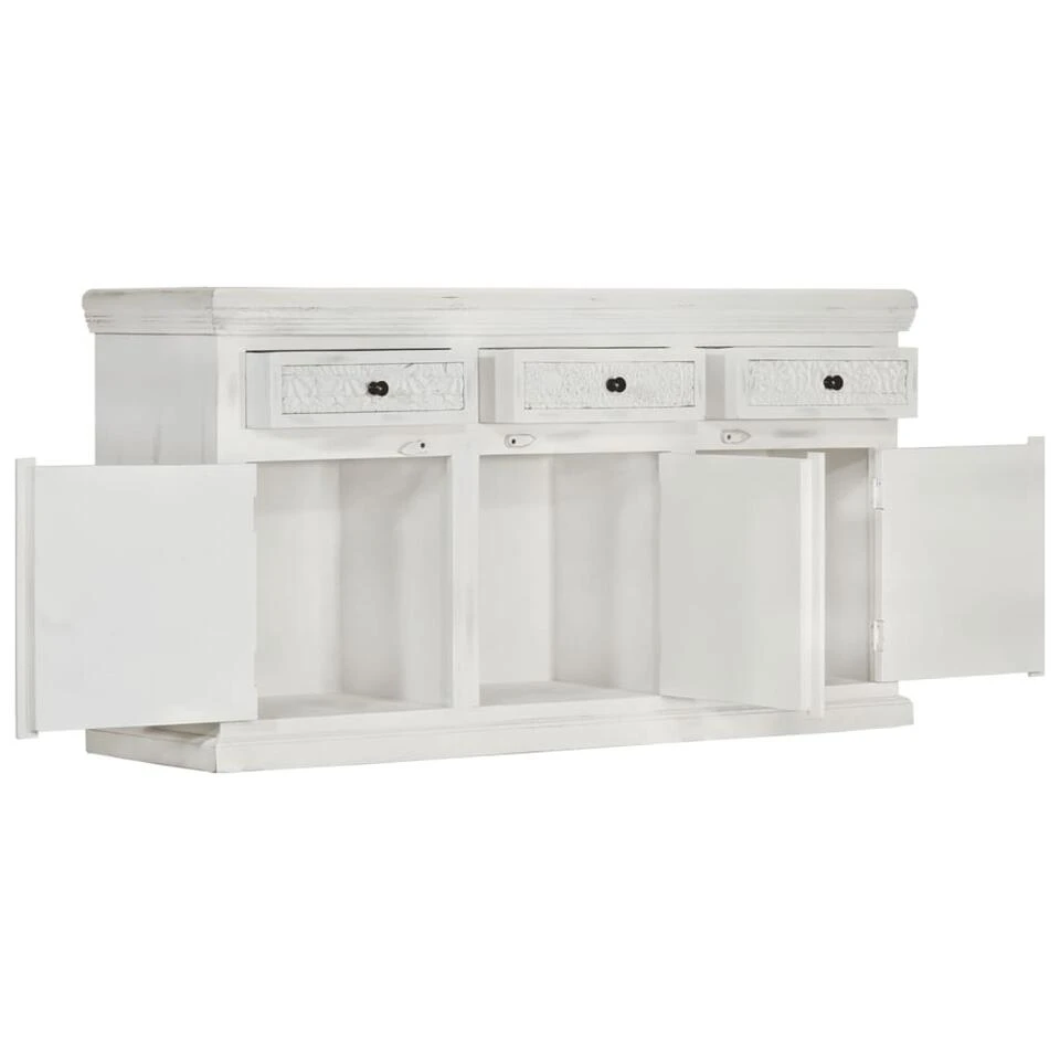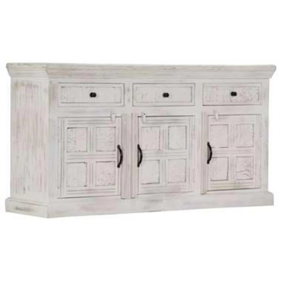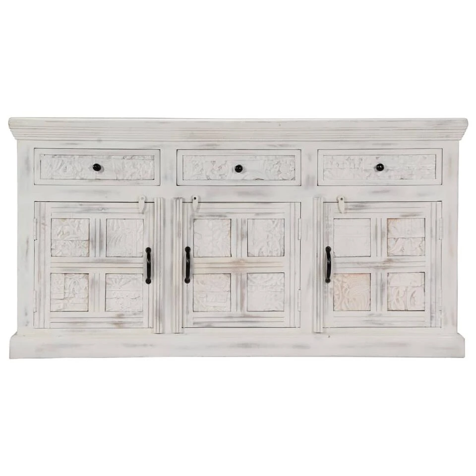 De kast is gemaakt van massief mangohout, een hardhout met dichte nerven. Ruw mangohout heeft niet alleen de kracht om veel gewicht te dragen, maar is ook goed bestand tegen slijtage. Daarom is dit prachtig ontworpen dressoir buitengewoon stabiel, duurzaam en esthetisch aantrekkelijk. De prachtige houtnerven maken elk meubel onderscheidend en enigszins anders dan de rest. Dit dressoir heeft 3 lades en 3 kasten met 3 deuren, waardoor er voldoende ruimte is voor het opbergen van je schoenen, boeken en diverse andere spullen.