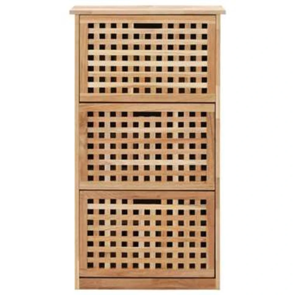 De schoenenkast heeft 3 opbergvakken die veel ruimte bieden voor het opbergen van negen paar schoenen. De schoenenkast is gemaakt van massief walnotenhout en multiplex en is heel stevig en duurzaam. Deze sterke halkast biedt een praktische plaats om je schoenen netjes en in stijl op te bergen. De kast is eenvoudig te monteren.