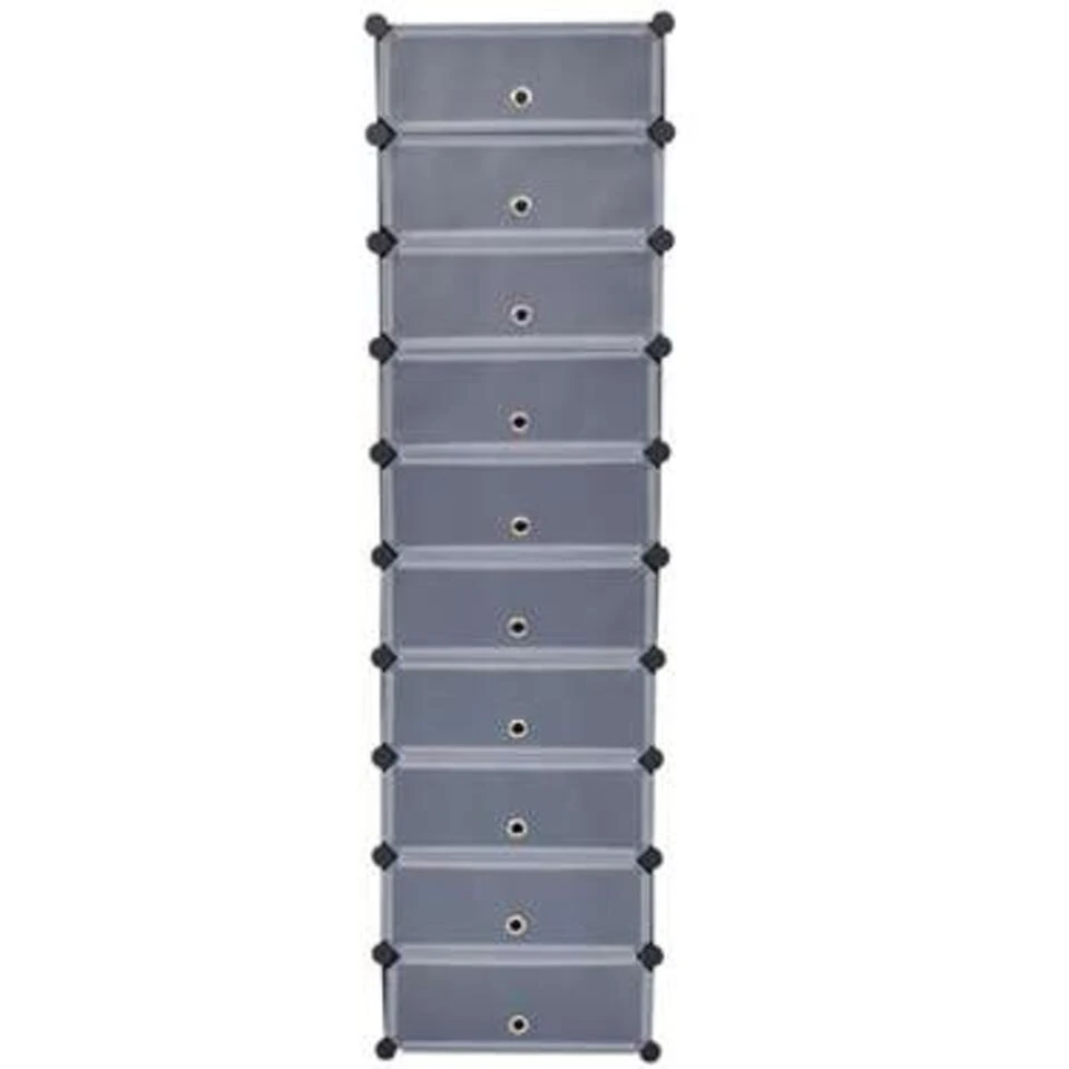 Deze stijlvolle en functionele schoenenkast heeft 10 vakken, ieder met een deurtje, en houdt al je schoenen schoon en georganiseerd.