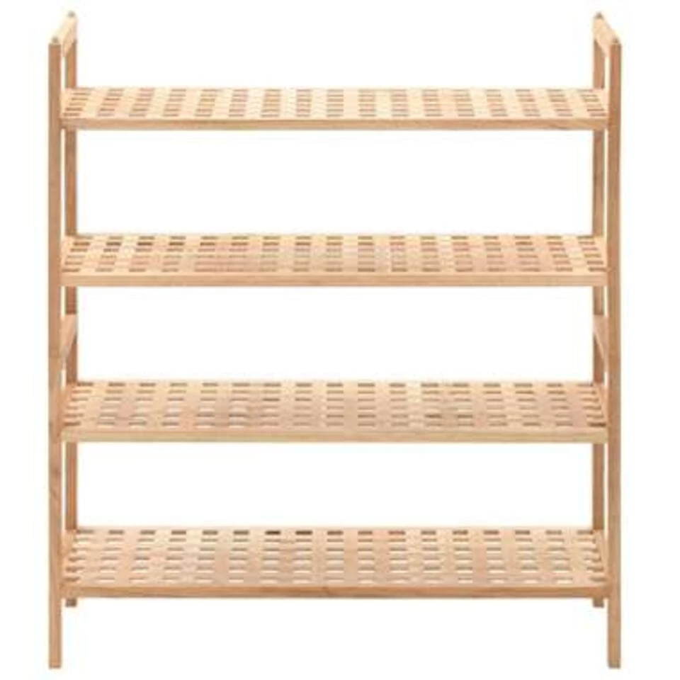 Deze houten schoenenhouder heeft 4 schappen, elk met een gelat platform om schoenen op te plaatsen en geventileerd te houden. Het schoenenrek is ruimtebesparend dankzij het compacte ontwerp.