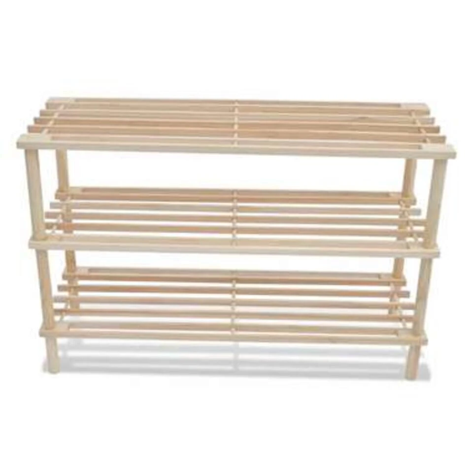 Dit 3-laags houten schoenenrek houdt je schoenen opgeruimd en goed georganiseerd. Het rek is perfect om in de gang te plaatsen of op een andere plek waar je je schoenen wilt bewaren.Â