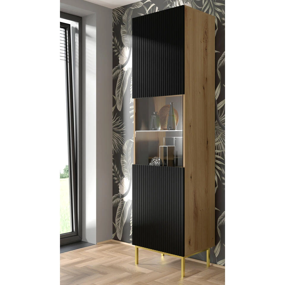Vitrinekast Ravenna B Foil MDF 217x60x42 Zwart/Beige/Goud